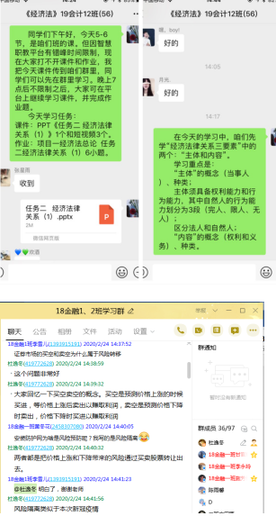 高度重视。学院领导十分重视线上教学工作,通过微信群、电话等,要求我院全体师生学习贯彻教育部和《陕西财经职业技术学院疫情防控期间教学工作安排》等有关文件精神,保障正常教育教学秩序,及时解决疫情期间师生教学学习问题。