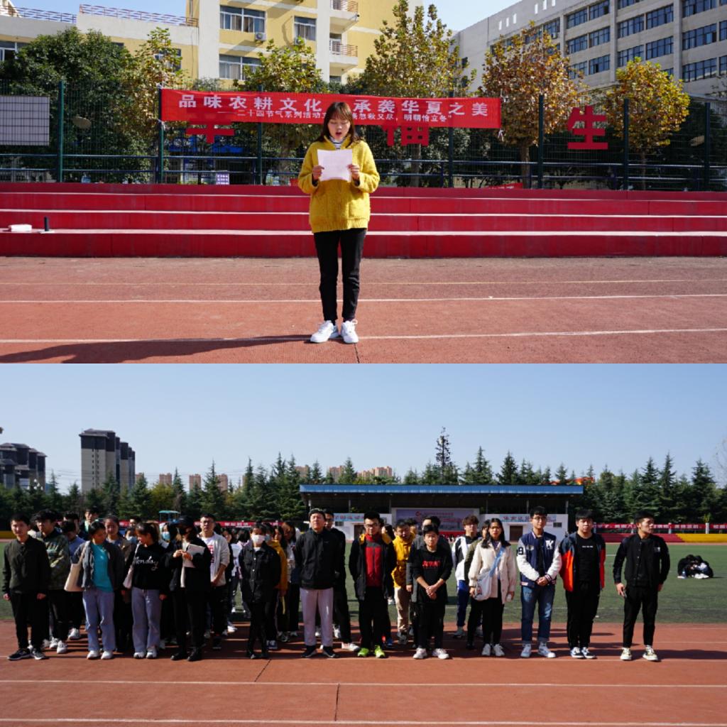 为了弘扬中华传统文化,让同学们拥有健康的身体和愉快的身心,提高学生的综合水平,贯彻“向日葵”育人计划。经济与金融学院团总支2020年11月6日下午于操场举办“二十四节气系列活动之立冬文化活动”。参加本次活动的有经济与金融学院19级全体学生,本次活动由黄欣悦主持。