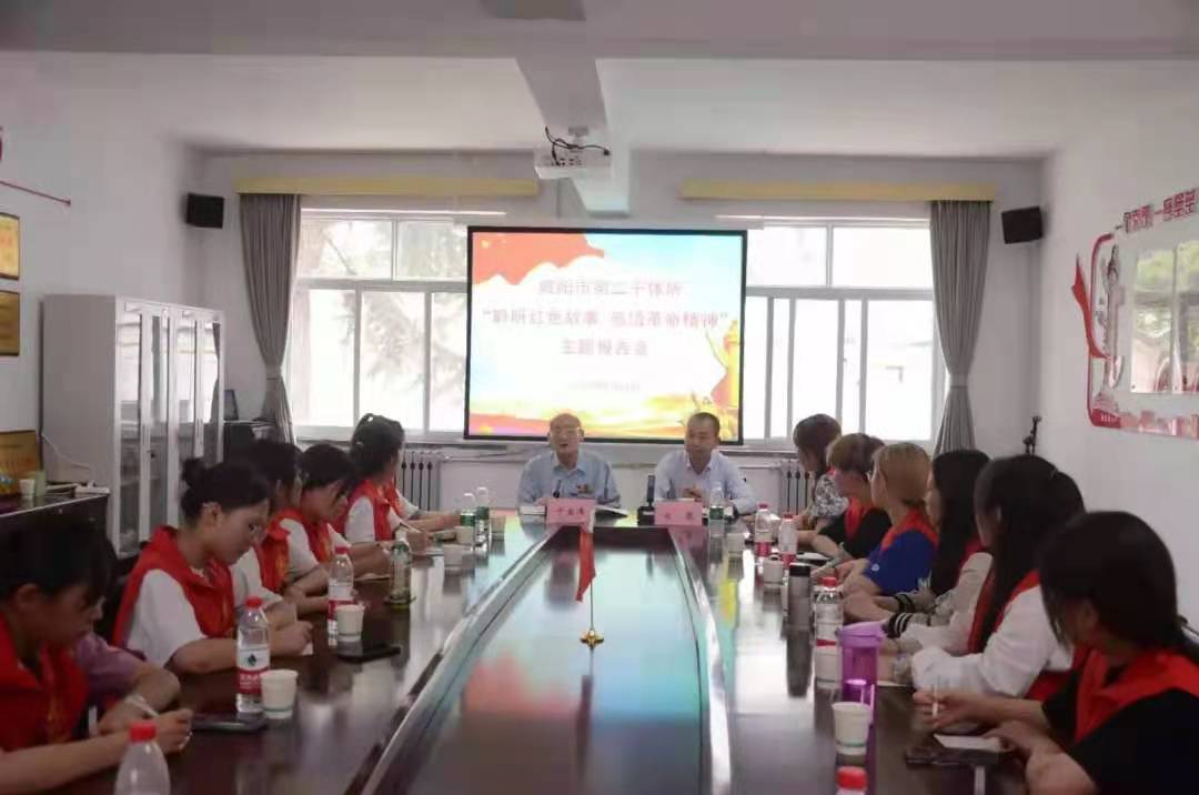 首先,由咸阳市第二干休所的离休干部于宝库爷爷带我们开展了“聆听红色故事,感悟革命精神”主题报告会。92岁高龄的他,依旧用自己的一言一行感染着我们,带着我们一起学习习近平总书记的重要讲话,他说“我们都是奔向新的胜利的参与者、奋斗者。”看着他胸前的勋章,听着他讲述自己的故事和感受。这对每一个同学来说都是深刻而又有意义的一课。