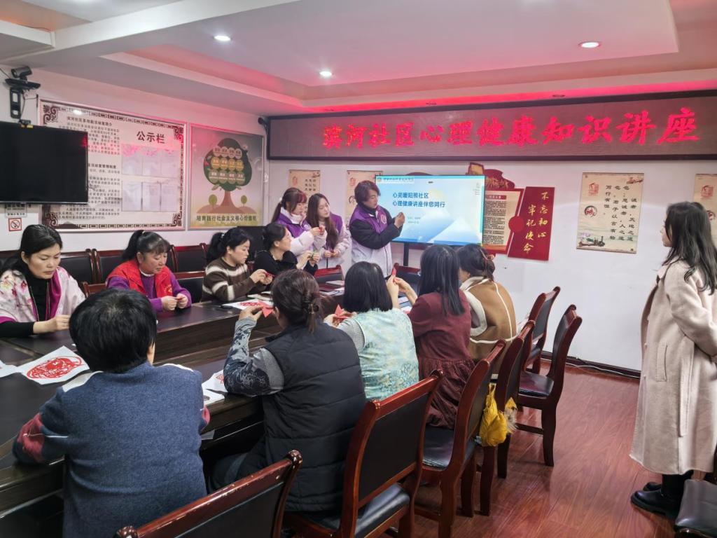 12月12日下午,陕西财经职业技术学院经济与金融学院心理服务站老师白倩倩和一众学生志愿者受邀,前往渭阳街道滨河社区,为一线社区工作人员举办了一场特别的“心灵暖阳照社区”心理健康专题活动。活动旨在帮助这些身处基层服务岗位的工作者舒缓压力、保持良好心态。