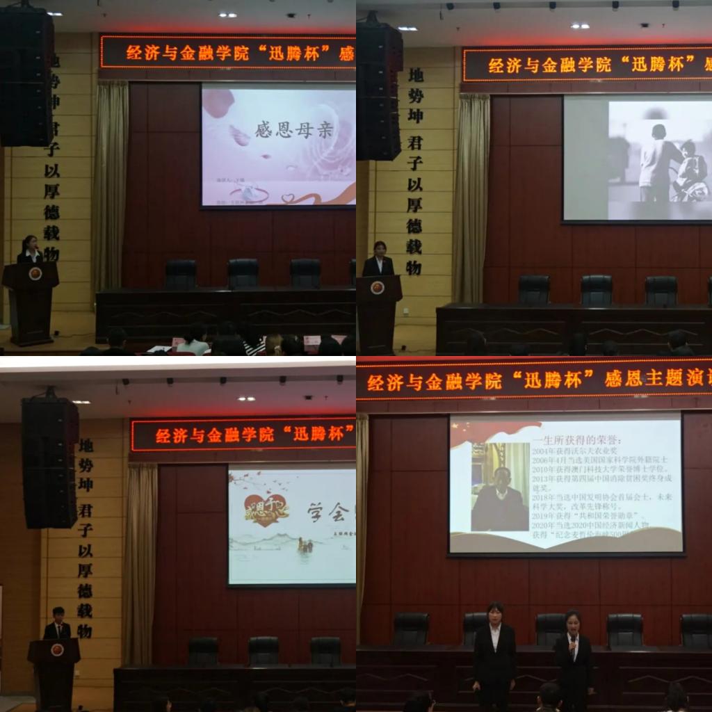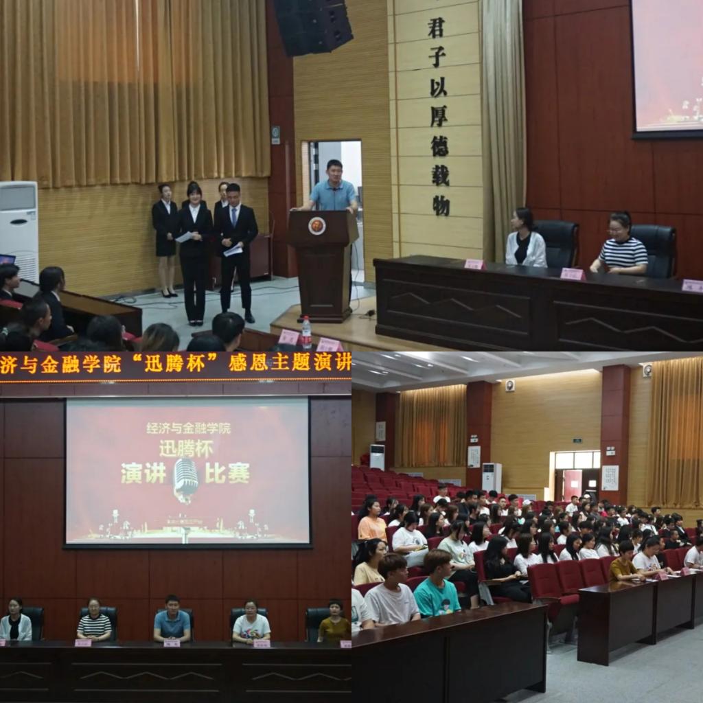 心怀感恩之心,致力社会建设。2021年6月3日下午4点30分,经济与金融学院联合天津滨海迅腾科技集团有限公司在学术报告厅举办“迅腾杯”感恩主题演讲比赛。出席本次比赛的领导老师有经济与金融学院副院长兼党总支副书记陈冬老师,经济与金融学院团总支书记张欣瑞老师,经济与金融学院办公室主任张力老师、黄雅娜老师,天津滨海迅腾科技集团代表张云娜、张小红老师等,以及2020级互联网金融与中小企业创业经营专业的学生。本次活动由张佳庆和余可君主持。活动开始,由陈冬老师致辞。