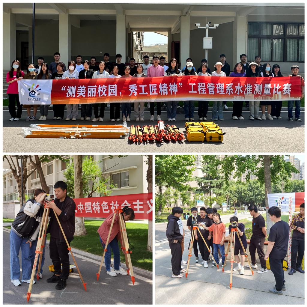 “测美丽校园,秀工匠精神”水准测量比赛。5月24日上午,工程管理系在校园内举行了水准测量比赛。本次比赛内容是四等水准测量,要求与全国职业院校技能大赛地理空间信息采集与处理赛项一致,旨在通过高标准、严要求,提高学生测量技能,做到“稳、准、快”。5月24日,在教学楼前进行了工程测量仪器展示。建设工程管理专业的同学为广大师生介绍水准仪、经纬仪、全站仪等工程测量仪器的使用方法,现场气氛热烈。
