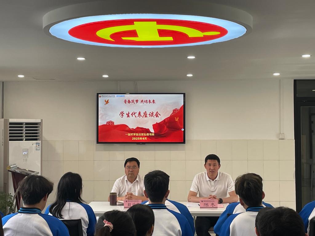 为深入贯彻落实立德树人根本任务,推动育人力量扎根一线,进一步畅通师生沟通渠道,搭建师生“零距离”对话平台,2025年4月22日下午,一站式学生社区弘德书院在3号公寓党建厅举办“青春筑梦,共话未来”学生代表座谈会。学校党委委员、副书记兼纪委书记殷兴光、30余名学生代表参加座谈会,会议由经济与金融学院院长兼党总支书记陈冬主持。