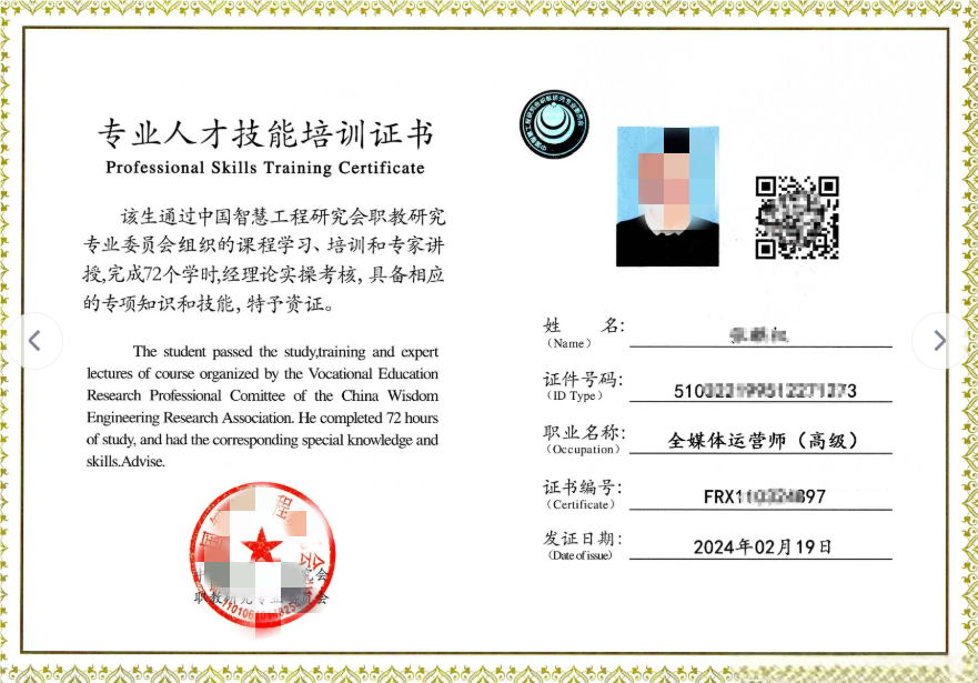 证书一:全媒体运营师
