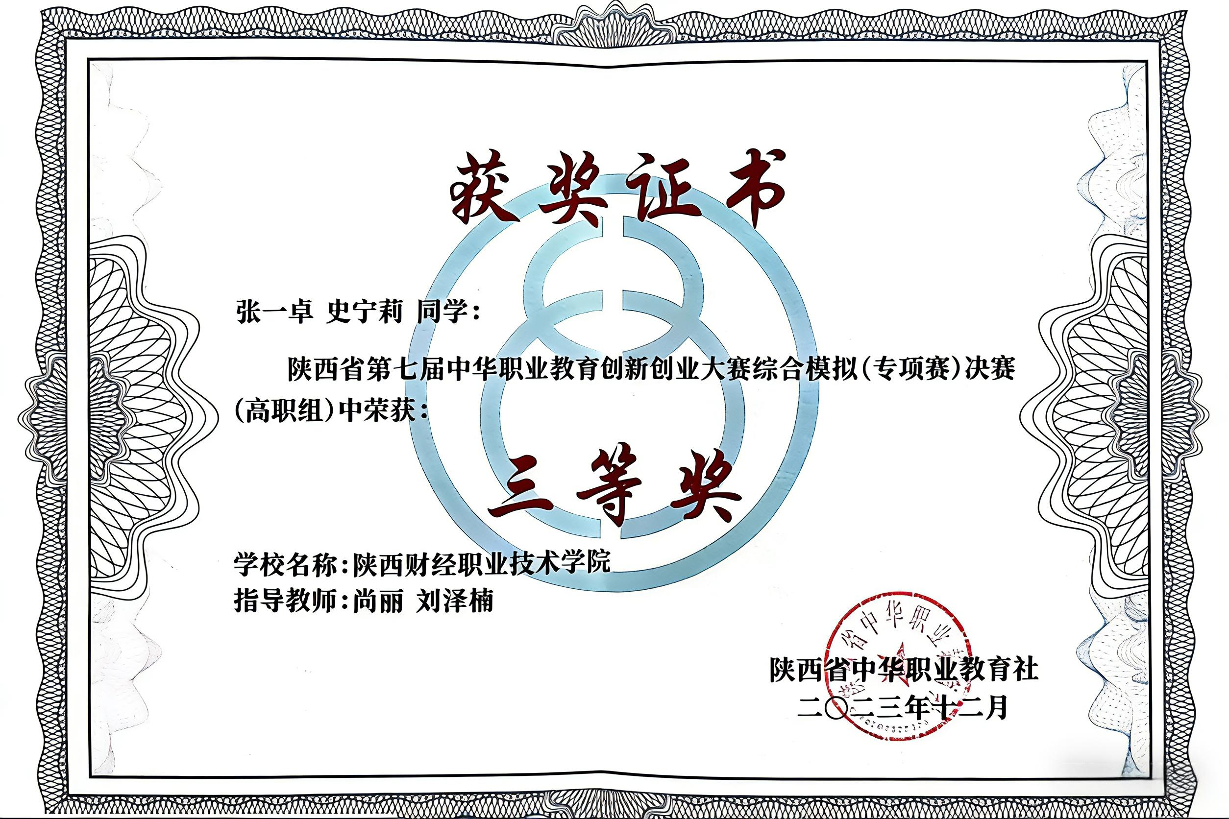 5.陕西省第七届中华职业教育创新创业大赛省赛三等奖1项;